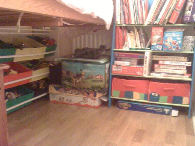 It still needs some shelves being put back and his posters up on the wall but he is loving it - especially banning his sister from "my room".