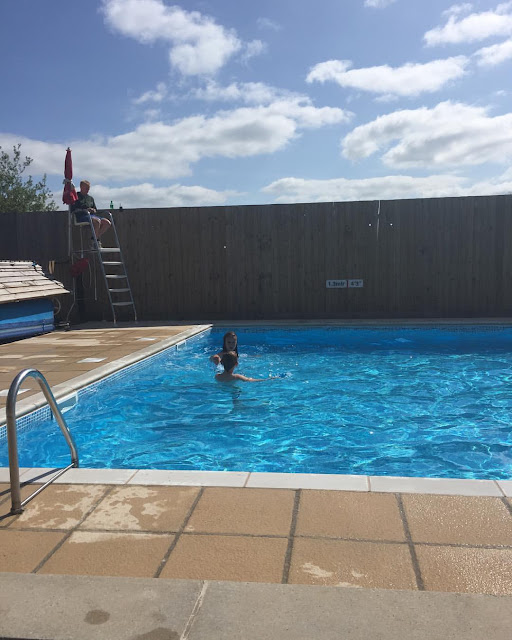 As it was low season we didn't have to rush off site by the normal checkout time of 11. Instead we packed up the tent and sleeping things before heading over to the pool again. This time I left the kids to it as I didn't fancy the cold! Afterwards we got take out pizza from the bar to eat back at the camp. This gave us the energy to complete the packing up.