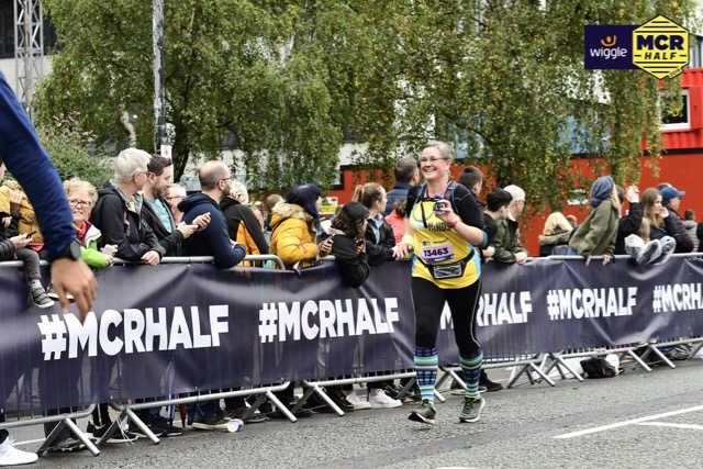 With my family, I joined plenty of other runners in the local Costa for one last drink before the race. At this point my race nerves kicked in so I headed to my start pen way ahead of time! This gave me a chance to chat to other runners and even share a mutual birthday hug with another participant, We were all well covered up due to the classic Manchester weather:
